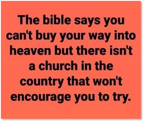 Also among the most popular anti-Christian clichés is the old they’re-only-in-it-for-the-money trope. And here too, one must admit there have been plenty of religious hucksters to provide fodder for the critics…
