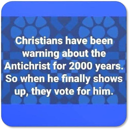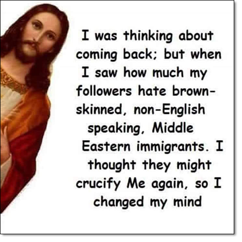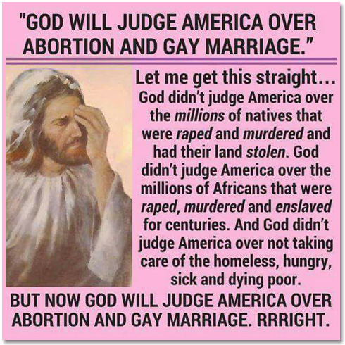 I’m not sure whether this meme is a commentary on the moral obtuseness of Christians or on the hypocrisy of non-believers. But I offer it for your consideration…
