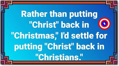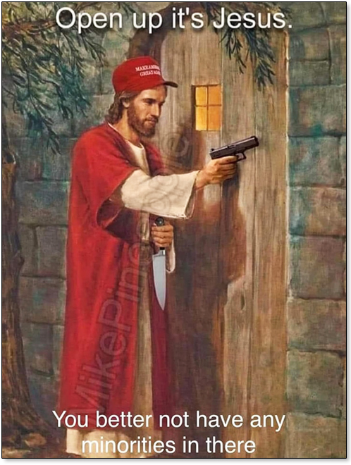To that end, the more offensive the better — Faith be damned! — as in this meme that says a lot about the motives behind these ongoing assaults on Christianity…