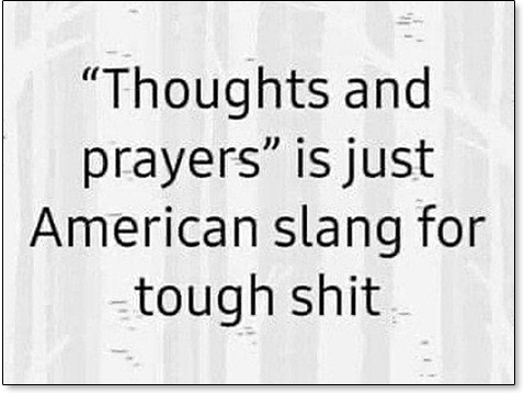 …or this snide swipe at Christians who offer thoughts and prayers for people’s suffering…