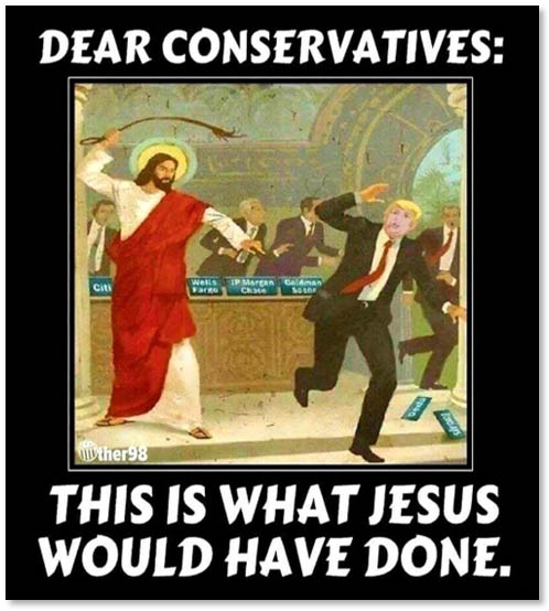 But what I find most annoying are the totally insincere adaptations of Jesus’ words and the exploitation of biblical images that are given a decidedly political twist — like this one, which might be titled “The Sermon on the Soap Box”…